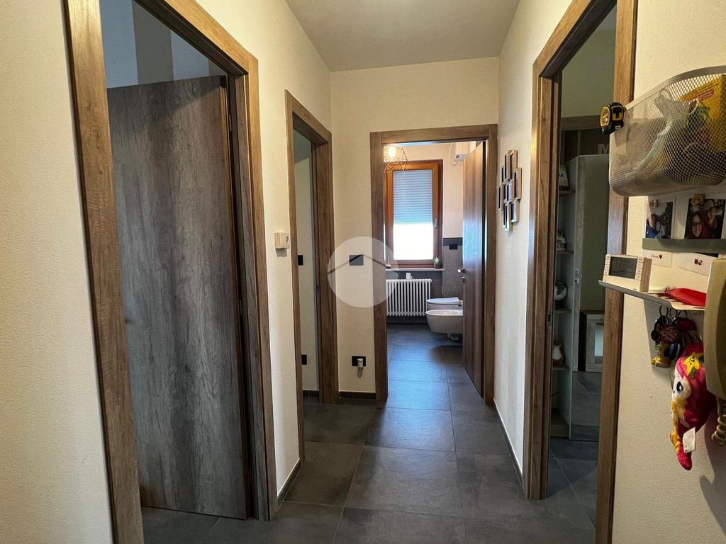 L' ingresso avviene sul corridio che divide la soluzione in 3 ampi e luminosi locali. Da questi è possibile ricavare la zona giorno formata da cucina e soggiorno e la zona notte composta dalla camera da letto matrimoniale. Ogni ambiente è dotato di sfogo esterno sul terzzarro e sul balcone pertinenziale, ideale per momenti di relax all' aperto. Il servizio è dotato di finestra e di box doccia.
